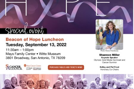 Mays Cancer Center and SA Cancer Council welcome 7-time Olympic medalist Shannon Miller to Beacon of Hope Luncheon FOR IMMEDIATE RELEASE September 9, 2022 Contacts: Eileen Teves, 210-450-7239, tevese@uthscsa.edu Monica Taylor, 210-450-8970, taylorm1@ut …