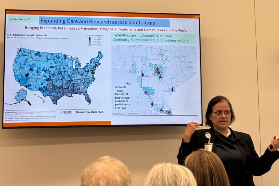 Sudha Seshadri, MD, DM, neurology professor and founding director of the Glenn Biggs Institute for Alzheimer’s and Neurodegenerative Diseases at UT Health San Antonio, speaks April 7, about the expansion of Alzheimer’s Disease research centers across South Texas.