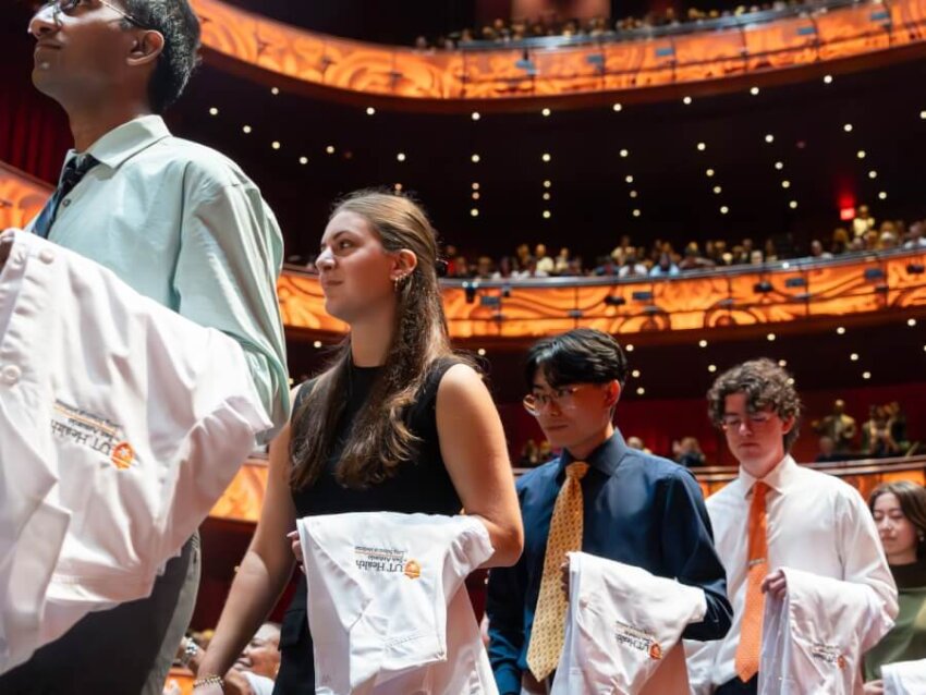 Across five of the six health professional schools — the Joe R. and Teresa Lozano Long School of Medicine, School of Dentistry, School of Nursing, the Graduate School of Biomedical Sciences and the School of Health Professions — students stepped onto the stage, slipped on crisp white coats and pledged to uphold the highest standards of care, integrity and service.