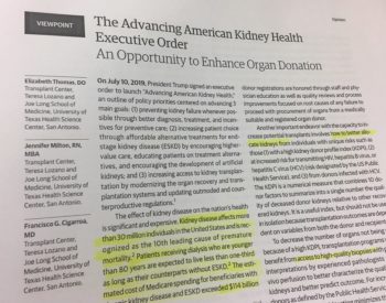…Laredo transplant clinic. The executive order “introduces strategies to improve the use of organs from deceased donors, but more can be done,” the authors said. Expanding the number of people…